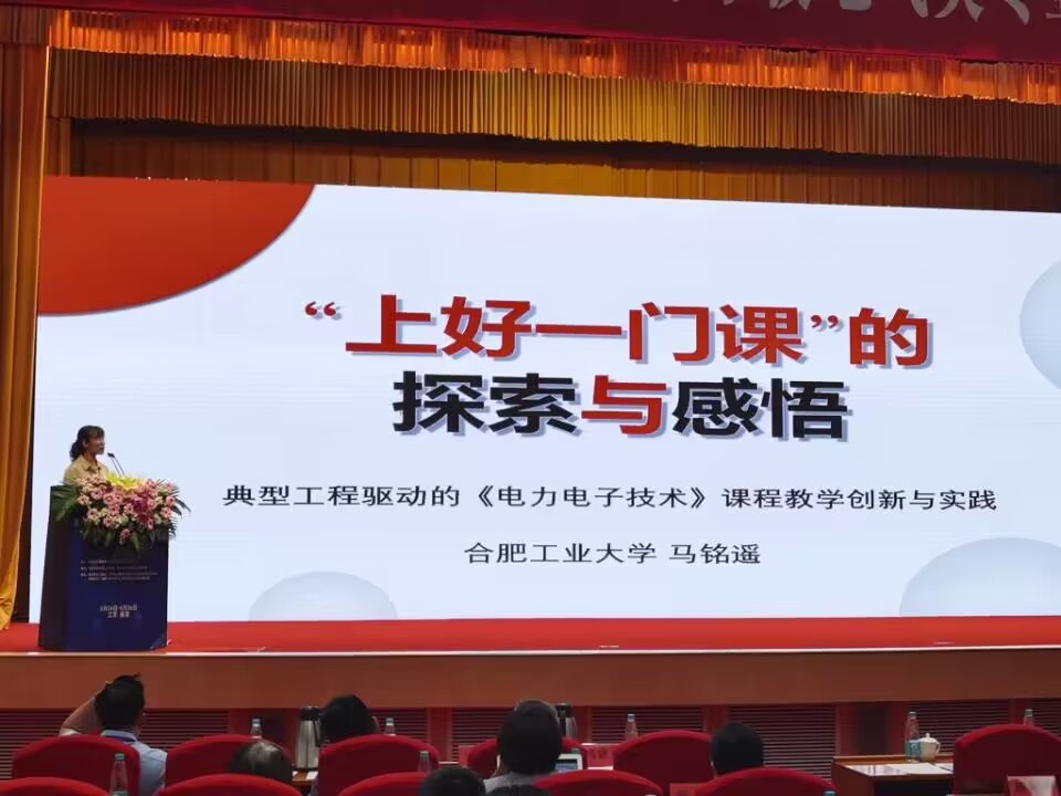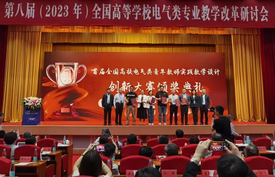 我院黄海宏副院长带队参加了大会。汪海宁老师作为教育部高等学校电气类专业教学指导委员会主办的首届全国高等电气类青年教师实践教学设计金奖获得者代表上台领奖;马铭遥老师在大会上做了“‘上好一门课’的探索和感悟”的特邀报告;王海欣、黄海宏、汪海宁和张鹏老师提交了教研论文《新型电力电子技术实验教学装置》,在分组讨论中与其他参会院校老师进行交流探讨,宣传我院在实验教学、一流课程建设等方面的经验与成果。