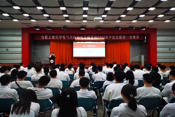 为做好学院2022届毕业生党员的教育和管理工作,教育引导毕业生党员坚定理想信念,牢记初心使命,勇于担当作为。6月8日上午,电气与自动化工程学院“奋斗,青春最高的礼赞”最后一次党课在东风报告厅举行,学院党委副书记兼纪委书记李丽鹏、毕业班辅导员及全体本科生、研究生毕业生党员参加活动。