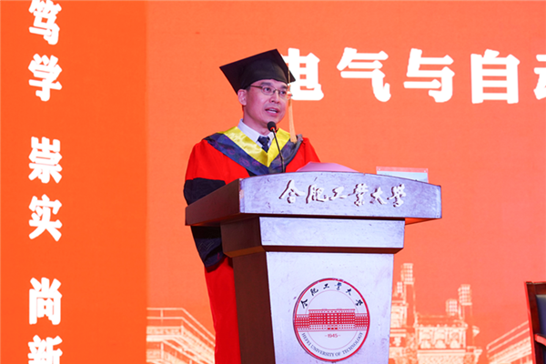 党委副书记、纪委书记陆林代表学校向圆满完成学业并顺利获得学位的各位同学表示热烈的祝贺,向辛勤培育大家的老师、父母、亲友表示衷心的感谢。他希望广大同学要心怀“国之大者”,秉持一代代工大人“工业报国”之精神,为服务国家富强、民族复兴、人民幸福贡献出自己的力量;要锤炼高尚品格,从百年党史中汲取道德力量,从英雄人物身上体悟道德风范,从工大历届杰出校友事迹中感受“追求卓越、勇攀高峰”的道德追求,立大志、明大德;要勇于创新实干,把握时代潮流和国家需要,将仰望星空与脚踏实地完美地结合起来,将工大人求真质朴的风格传承下去,在攀登知识高峰中追求卓越,在肩负时代重任时行胜于言。