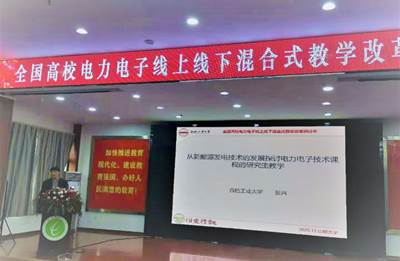 全国高校电力电子线上线下混合式教学改革研讨会于2020年12 月 18 日-22 日在三峡大学举办,会议意在贯彻落实全国教育大会精神,推进新工科专业建设,提升教师教学能力,搭建“一流专业、一流课程”建设经验的交流平台。合肥工业大学电气与自动化工程学院黄海宏副院长、张兴教授和李飞副教授受组委会邀请参加了本次会议。黄海宏副院长在报告中分享了其在电力电子技术实验教学方面的思考。张兴教授作了题为“从新能源发电技术的发展探讨电力电子技术课程的研究生教学”的大会报告,介绍了合肥工业大学电力电子技术研究生课程的设置与教学探索的相关情况。李飞副教授介绍了我院的新能源发电变流技术实验平台,体现了如何让科研反哺教学。