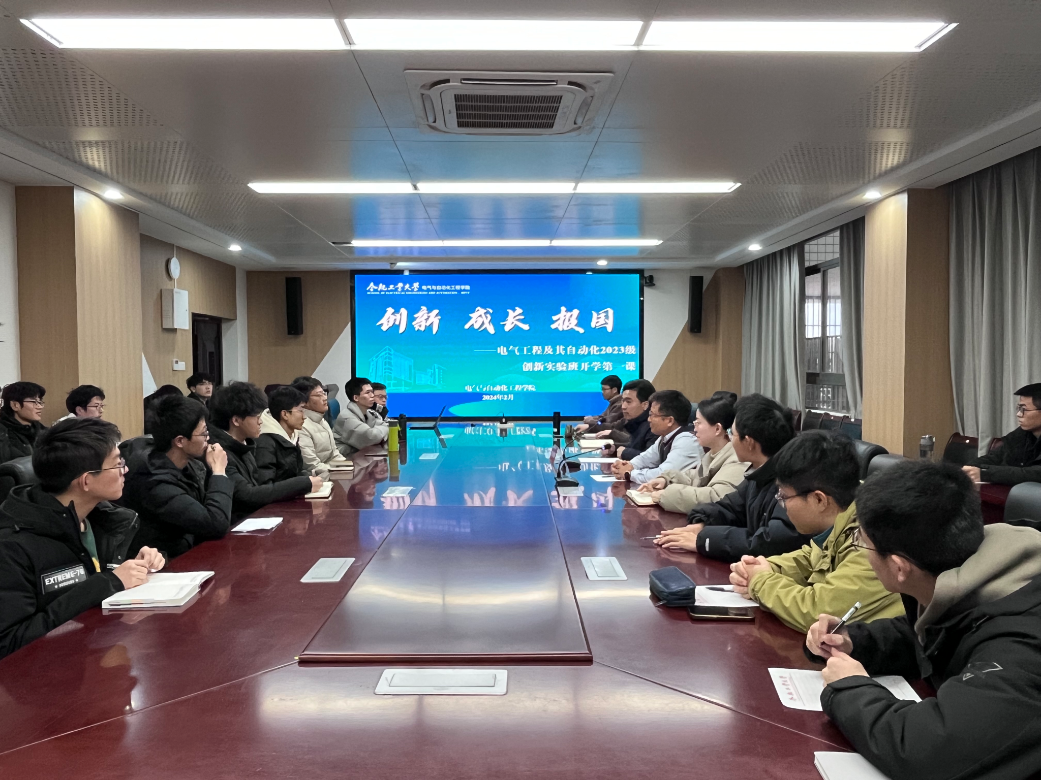 2月28日,电气与自动化工程学院组织开展“创新 成长 报国”2023级创新实验班开学第一课,学院党政相关负责人、相关负责老师、教务员参加活动。