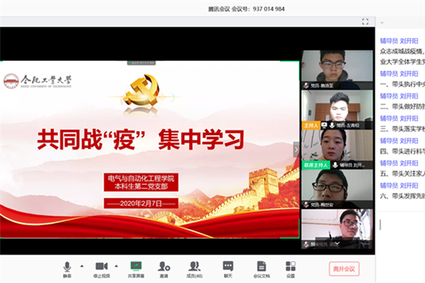 疫情就是命令,防控就是责任。为贯彻落实中央针对疫情防控作出的重要指示精神,2月7日电气与自动化工程学院本科生党支部以视频会议形式召开“共同战疫”专题集中学习,组织学习省委、省教育工委、学校党委和学院党委关于全体党员做好新型冠状病毒感染肺炎疫情防控工作的文件精神。全体本科生学生党员参加学习。