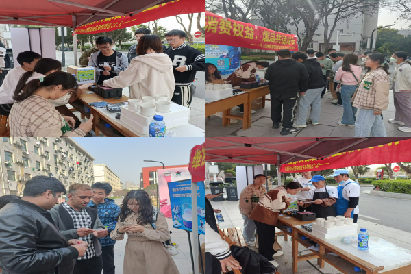 本次活动由“消费维权,‘熠’路同行”权益知识问答活动和“共话权益,‘熠启’成长”专题座谈会两部分组成。在权益知识问答活动现场,学生们纷纷前来参加知识竞答,帐篷前一时间人声鼎沸,热闹非凡。同学们在答题箱中随机抽取有关消费知识的题目进行作答,志愿者们则根据抽取的题目向同学们普及有关消费权益保护的知识。勤奋积极的同学们在一道道的题目中收获了趣味与欢笑,更丰富了关于消费权益的知识储备。本次活动还吸引了许多学校职工、退休老教师以及外国留学生前来参加。