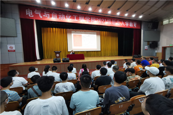 为帮助广大新生在感悟党史中坚定爱党心、树立报国志,自觉筑牢理想信念之基,培养德智体美劳全面发展的社会主义建设者和接班人,2021年8月28日下午,电气与自动化工程学院在斛兵礼堂电气学院开展“使命在肩,奋斗有我”2021级新生入学教育系列活动(一)——青年的历史使命与责任担当党史教育主题讲座,并邀请我校马克思主义学院陈殿林教授主讲。