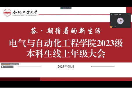 首课迎门,熠启新程。为帮助2023级新生扣好“人生第一粒扣子”,营造舒适、安全的入学环境,8月21日晚,电气与自动化工程学院开展“答·期待着的新生活”2023级本科生线上年级大会。