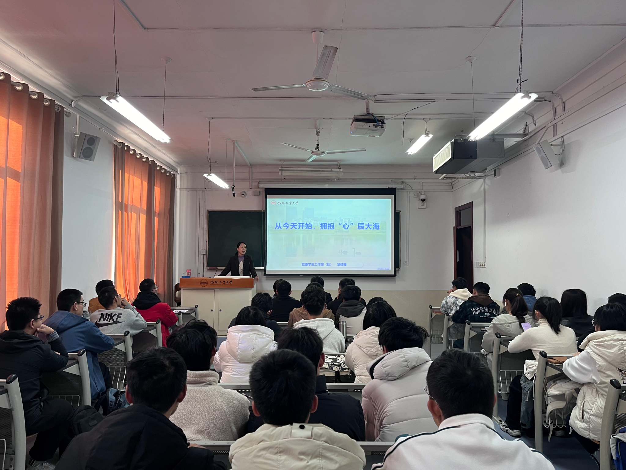 11月24日,电气与自动化工程学院于主教学楼306组织开展新生成长发展引导教育第一课专题精讲暨“熠见·青心”主题班会,校心理健康教育与咨询中心主任邹佳莹受邀担任主讲人,学院2023级本科新生辅导员,学生代表参与本次活动。
