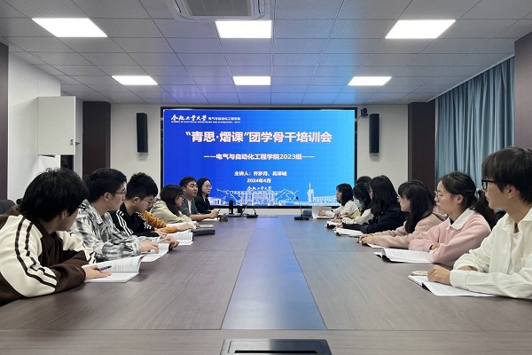 4月3日下午,电气与自动化工程学院在逸夫楼1004开展“青思·熠课”2023级团学骨干培训会,学院相关负责老师及2023级团支部书记参加活动。