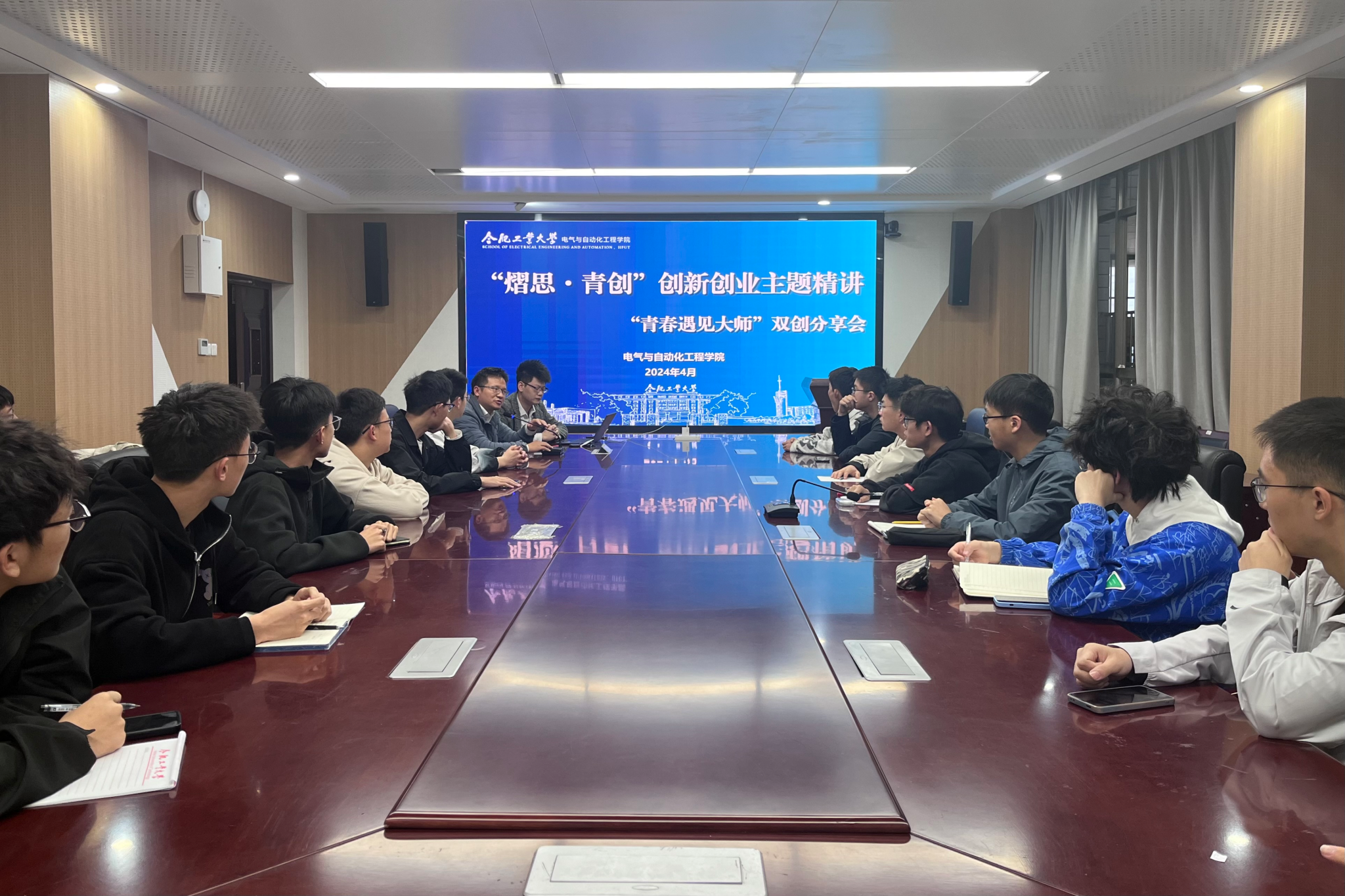4月7日,电气与自动化工程学院“青春遇见大师”双创分享会之“熠思·青创”创新创业主题精讲于逸夫楼1009会议室组织开展,计算机与信息学院吕增威副研究员受邀主讲,学院党政相关负责人、电气工程及其自动化2023级创新实验班全体学生参加活动。