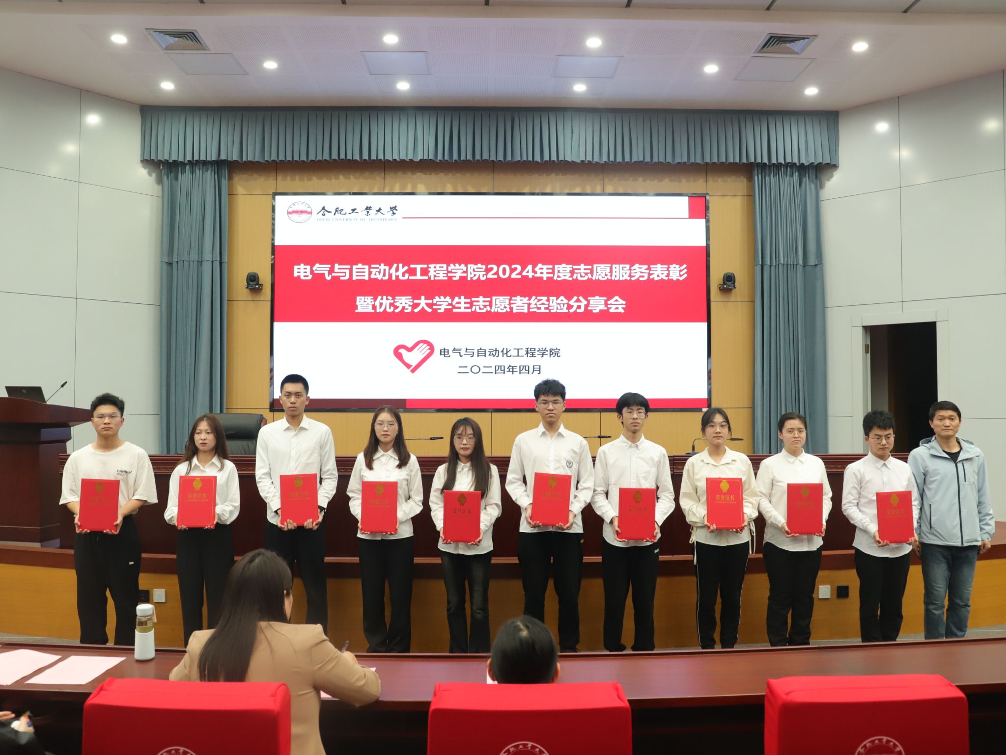 会上,学院学生工作办公室主任兼团委书记刘开阳宣读《关于表彰电气与自动化工程学院2024年度志愿服务先进班级、先进个人的决定》,与会领导老师为获奖的志愿服务先进班级和先进个人颁奖。