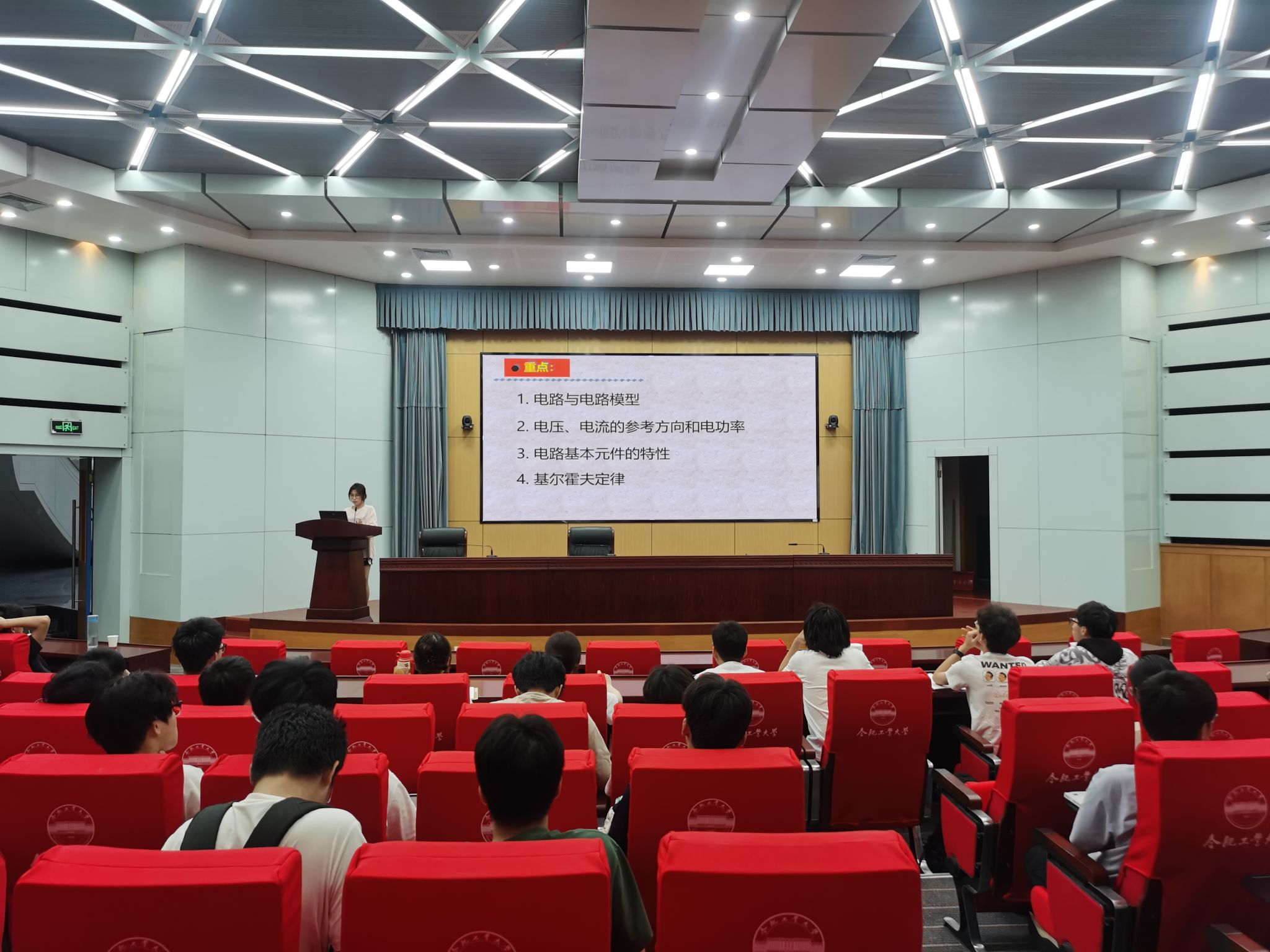 朋辈导师传授经验,砺能培优助力发展。学院依托学业发展辅导中心,经过严格的选拔,招募朋辈讲师10余人,全部为国家奖学金获得者,组织朋辈导师线下集中备课、交流研讨,针对各年级同学的实际需求,准确把握相关课程的重难点,精心设计课程内容。开展《电路理论》、《电路分析基础》等课程的线下集中授课活动。授课过程中,朋辈讲师带领同学生梳理不同课程的基础知识、重点题型、常考易考等内容,帮助同学们查漏补缺、构建知识框架。组织朋辈导师讲解重点习题,分析解题技巧,答学生之疑,解学生之惑。朋辈导师还分享了学习备考的经验和技巧,给出了合理的学习建议。学员们与朋辈讲师积极互动,针对学习、生活中的问题进行了交流和沟通,有效提升了辅导实效。