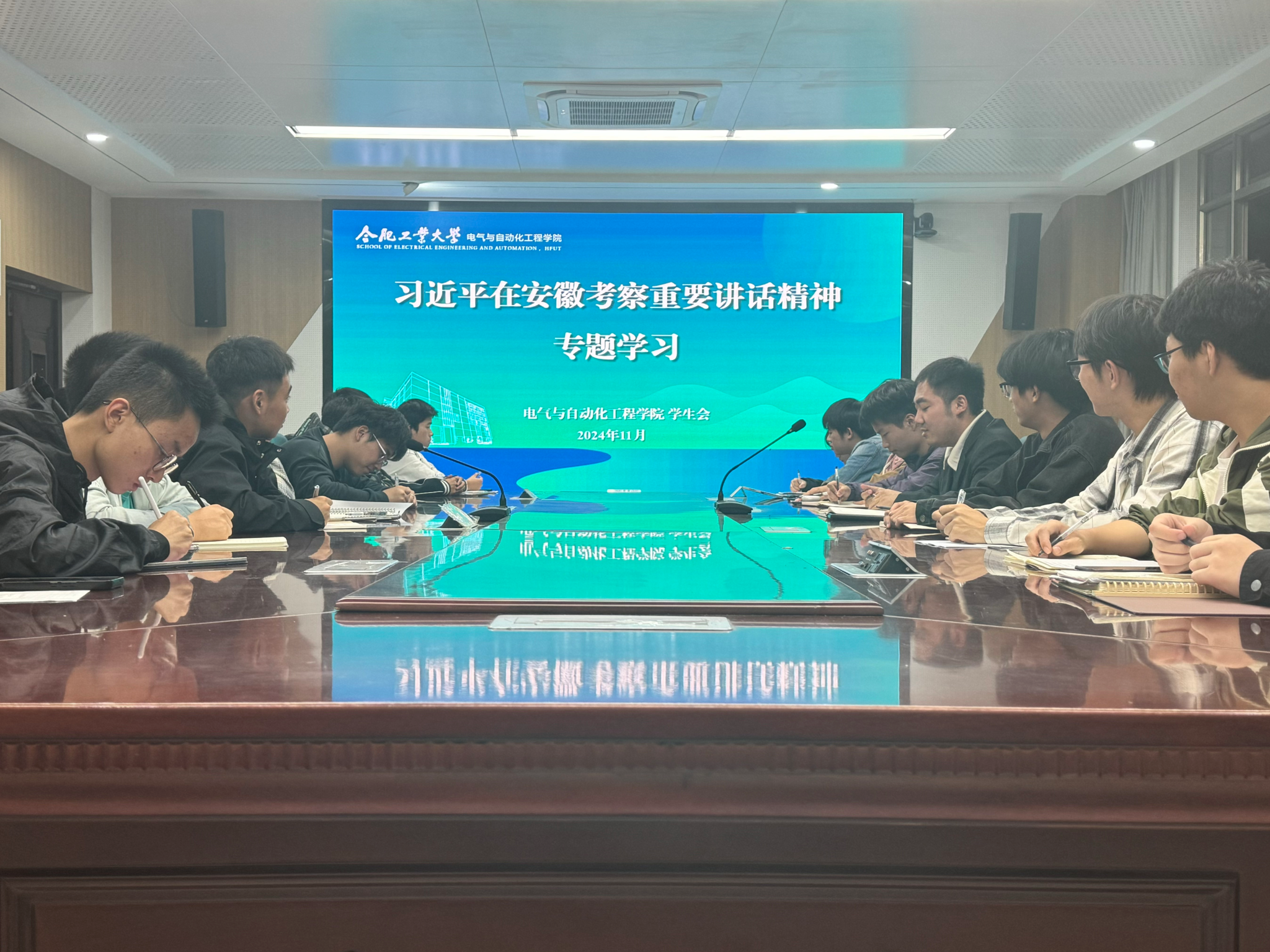 11月4日晚,电气与自动化工程学院学生会于逸夫楼1009会议室开展专题学习,学院学生会秘书长、团学组织相关负责人、学生会全体成员参加研讨。