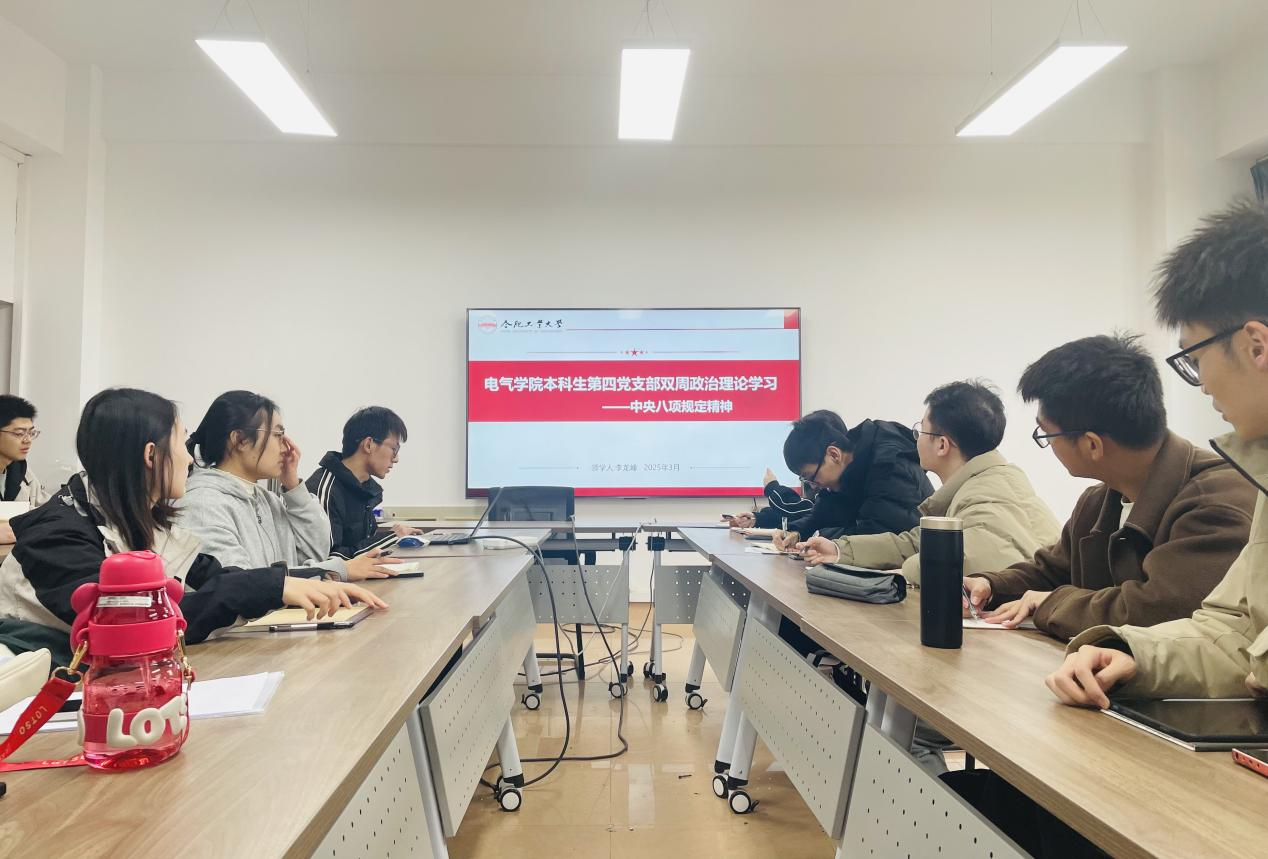 3月26日下午,电气与自动化工程学院本科生第四党支部在逸夫楼1008会议室开展“以中央八项规定精神为引领,走好作风建设新的长征路”专题党课,支部全体党员参加活动。