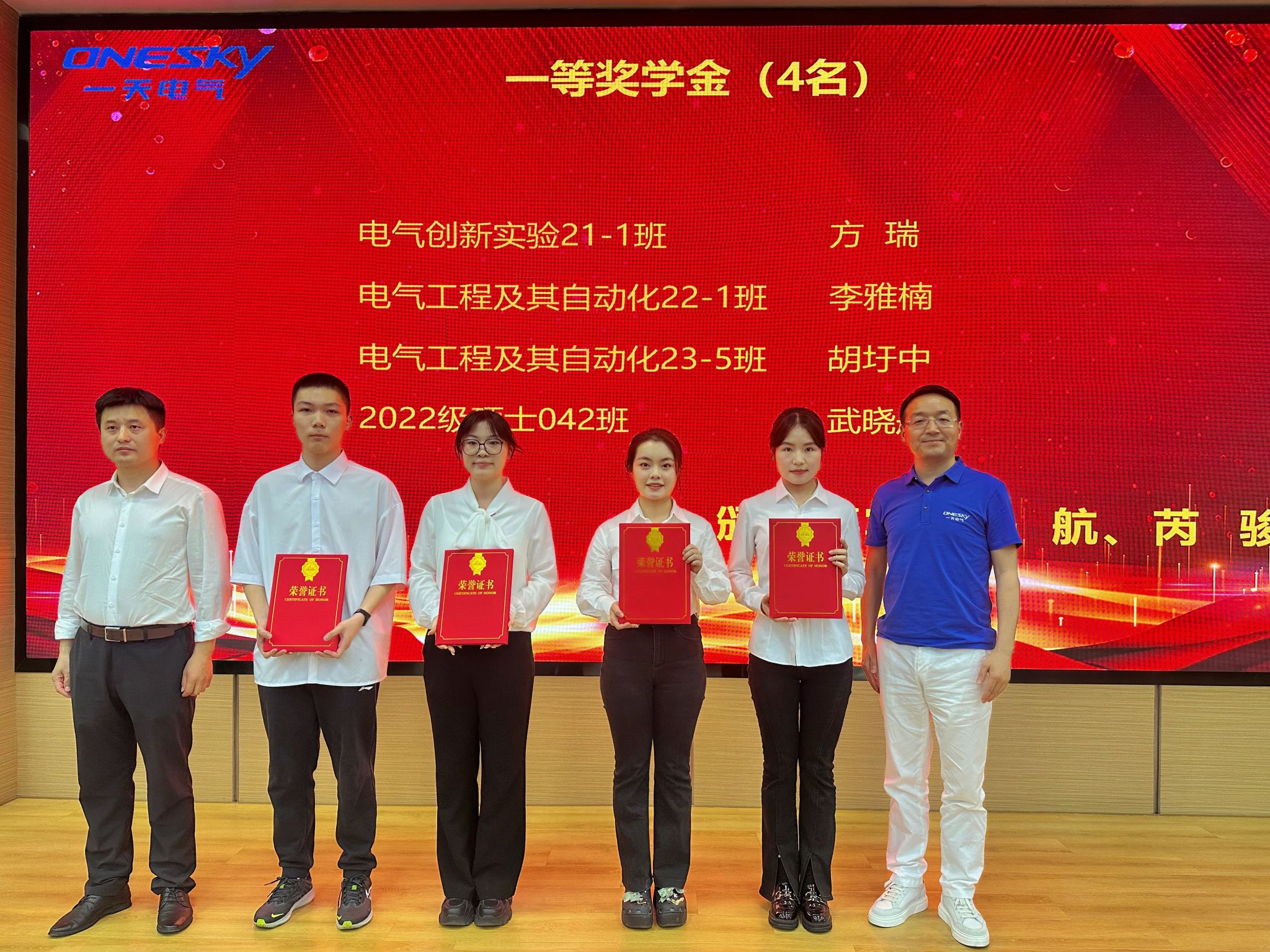 “一天电气奖学金”由安徽一天电气技术股份有限公司于2022年设立,连续四年,每年出资6万元,用以奖励电气与自动化工程学院优秀的本科生、研究生。
