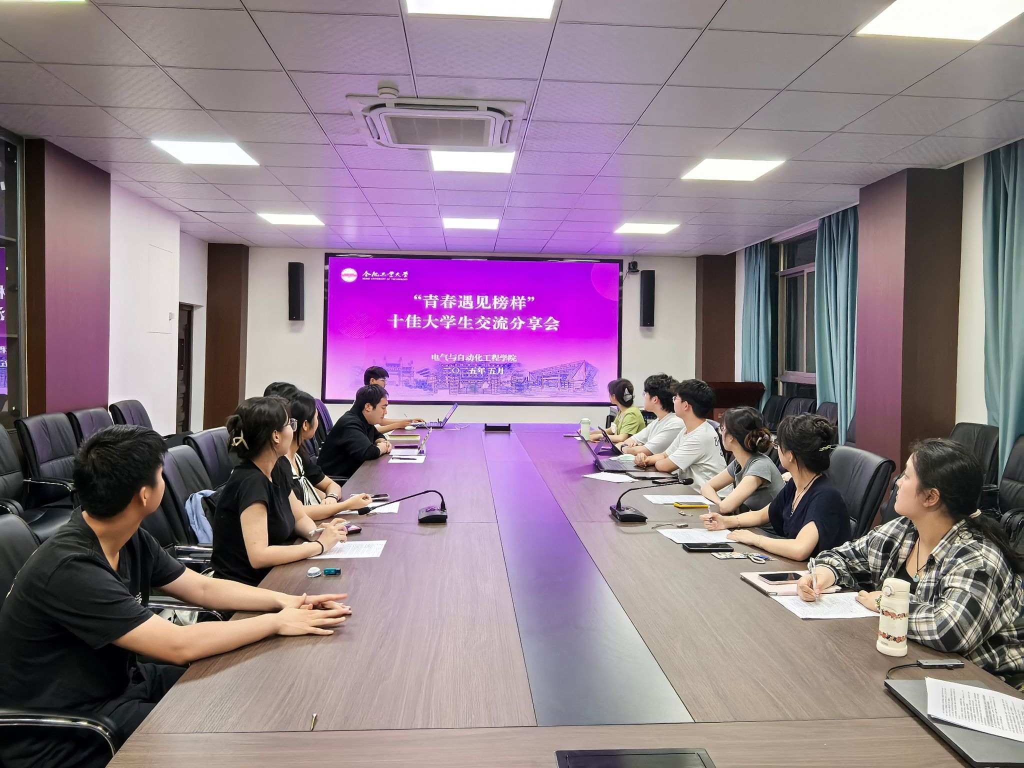 5月19日,电气与自动化工程学院在逸夫楼1004会议室开展“青春遇见榜样”十佳大学生事迹分享会。