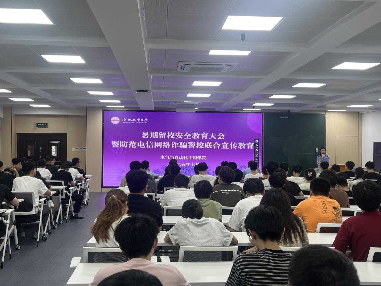 7月17日下午,电气与自动化工程学院在逸夫楼1005会议室召开暑期留校学生安全教育大会暨防范电信网络诈骗警校联合宣传教育,近200名留校学生骨干参会。
