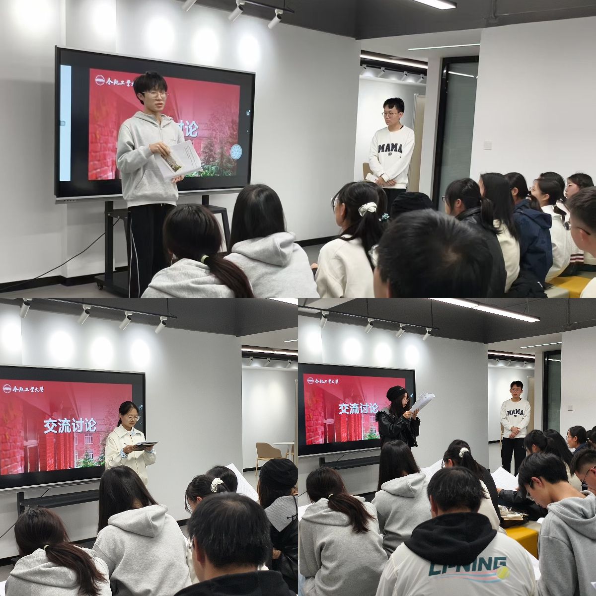 本次活动分为导言引入、深度阅读、小组讨论、心得分享四个环节开展,学生们共同在书香浸润中感悟思想伟力,在交流分享中凝聚青春共识。活动伊始,主持人对本次学习的背景与意义进行阐述,帮助同学们明确方向、深化认识。随后,大家深入学习习近平总书记在庆祝中国共青团成立一百周年大会上的重要讲话精神,共同研读《论教育》中的重要篇章,在深入学习中感受习近平总书记对青年大学生的殷切期盼和谆谆嘱托。在交流分享环节,大家结合自身学习生活和专业素养提升,积极分享所思所悟,在深入探讨中进一步提高认识、坚定信心。