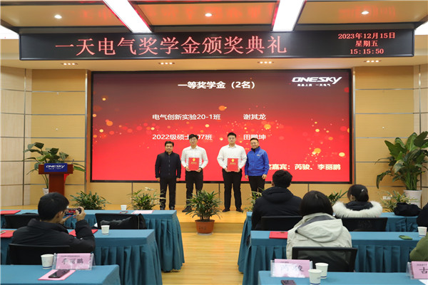 12月15日,电气与自动化工程学院赴安徽一天电气技术股份有限公司开展2023年“一天电气奖学金颁奖仪式暨劳动教育实践基地签约授牌仪式”活动,获奖学生和学院相关领导老师参加活动。