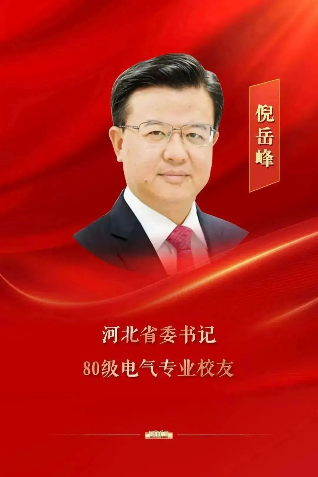 倪岳峰,男,汉族,1964年9月生,1984年合肥工业大学工业自动化专业本科毕业,1987年合肥工业大学工业自动化专业硕士毕业。现任中共第二十届中央委员,第十四届全国人民代表大会代表,河北省委书记,省人大常委会主任。曾任海关总署党组书记、署长(正部长级),福建省委副书记,福州市委书记。